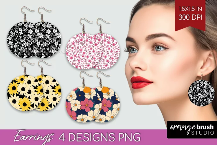 Similar Design Products to Retro Flowers Round Earrings - Floral PNG Sublimation