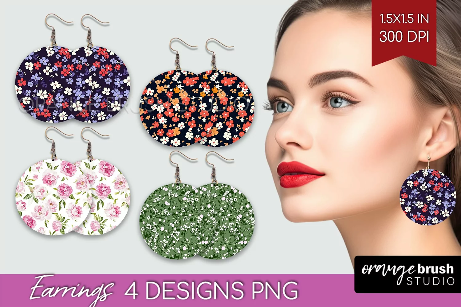 Retro Flowers Round Earrings - Floral PNG Sublimation