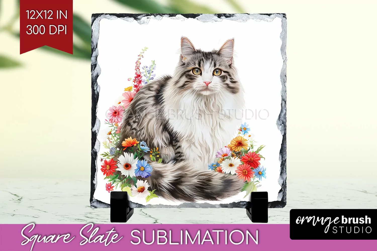 Floral Cat Slate PNG - Flowers Square Slate Sublimation