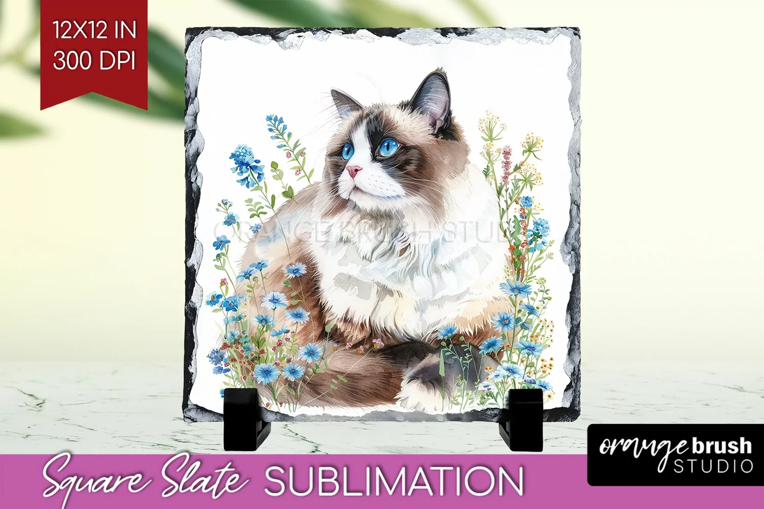 Floral Cat Slate PNG - Flowers Square Slate Sublimation