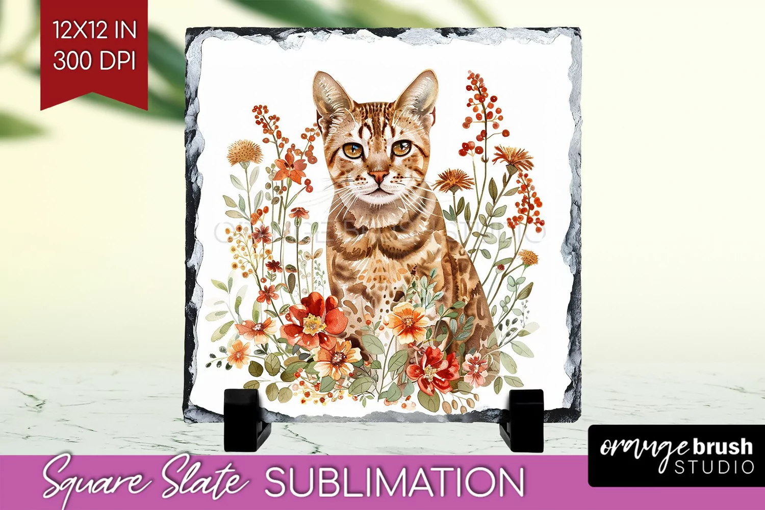 Floral Cat Slate PNG - Flowers Square Slate Sublimation
