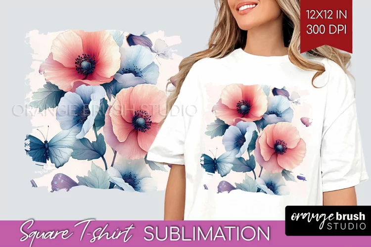 Square Sublimation Shirt Spring Flowers T Shirt Png Floral Shirt Background Butterfly T Shirt Sublimation