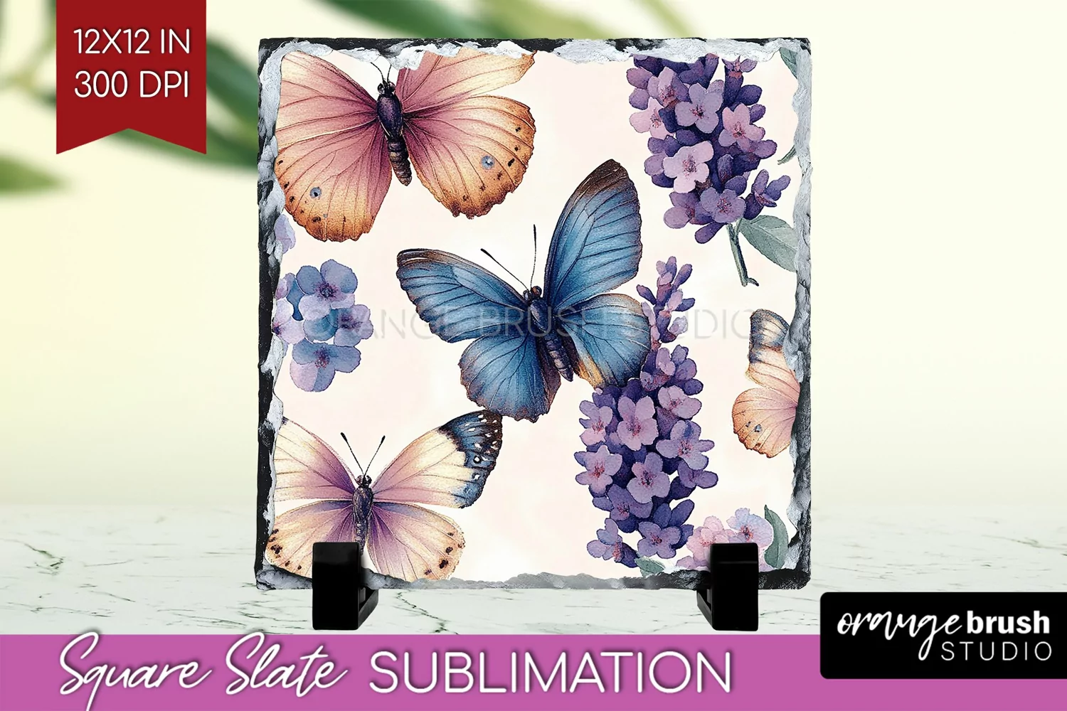 Slate Designs Spring Flowers Slate Sublimation Floral Slate Png Butterfly Square Slate