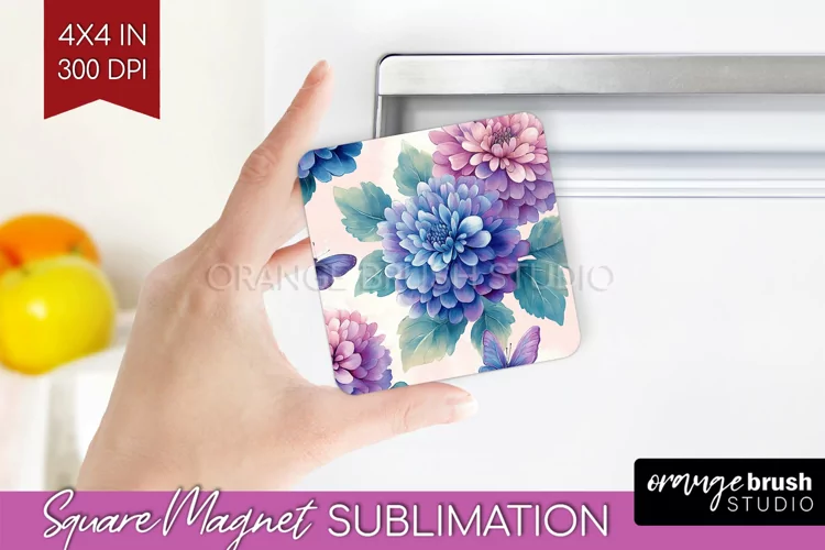 Butterfly Magnet Sublimation Fridge Magnet Sublimation Spring Flowers Magnet Png Floral Square Magnet