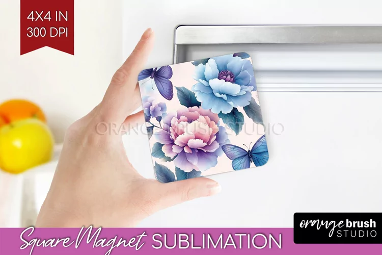 Butterfly Magnet Sublimation Fridge Magnet Sublimation Spring Flowers Magnet Png Floral Square Magnet