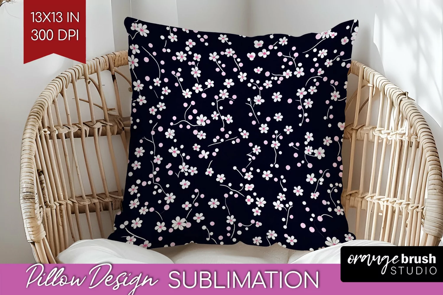 Retro Flowers Pillow Sublimation - Floral Pillow Cover PNG example image 1