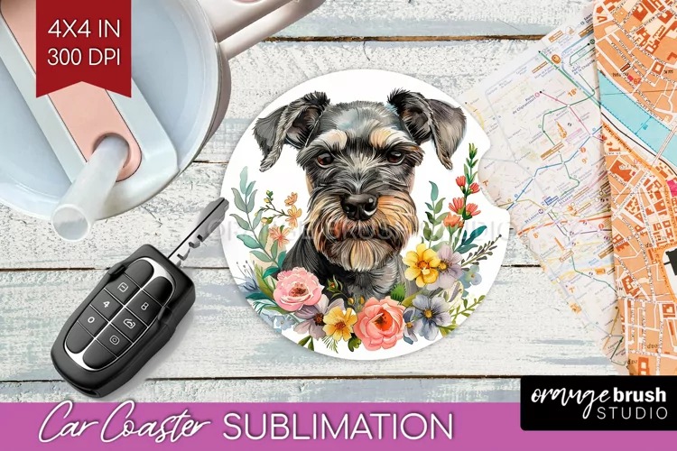 Floral Dog Car Coaster - Flowers Coaster PNG Sublimation example image 1