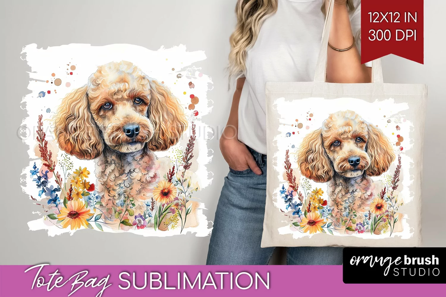 Floral Dog Tote Bag - Flowers Tote Bag PNG Sublimation example image 1