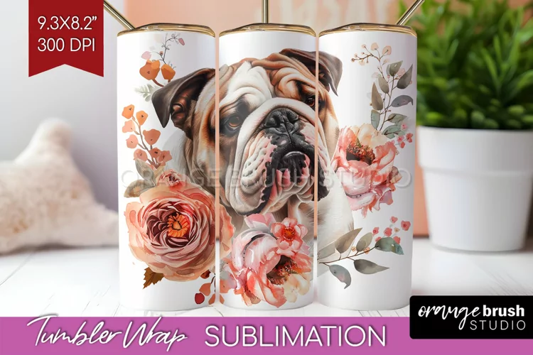 Floral Dog Tumbler Wrap - Flowers Tumbler PNG Sublimation