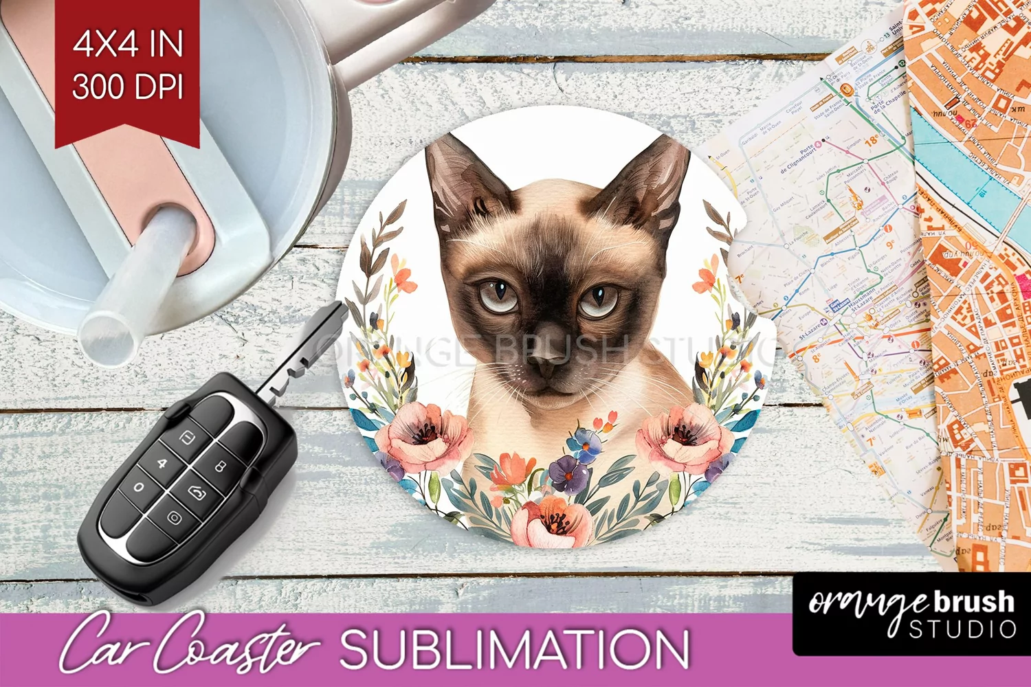 Floral Cat Car Coaster - Flowers Coaster PNG Sublimation