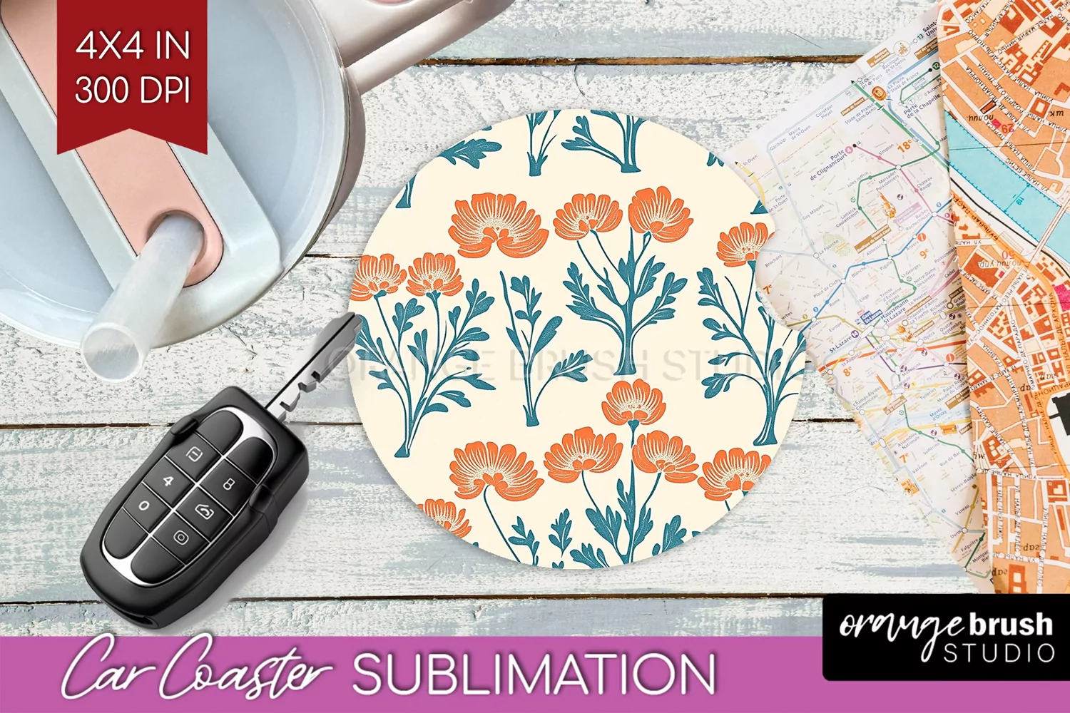 Vintage Flowers Car Coaster - Floral Coaster PNG Sublimation