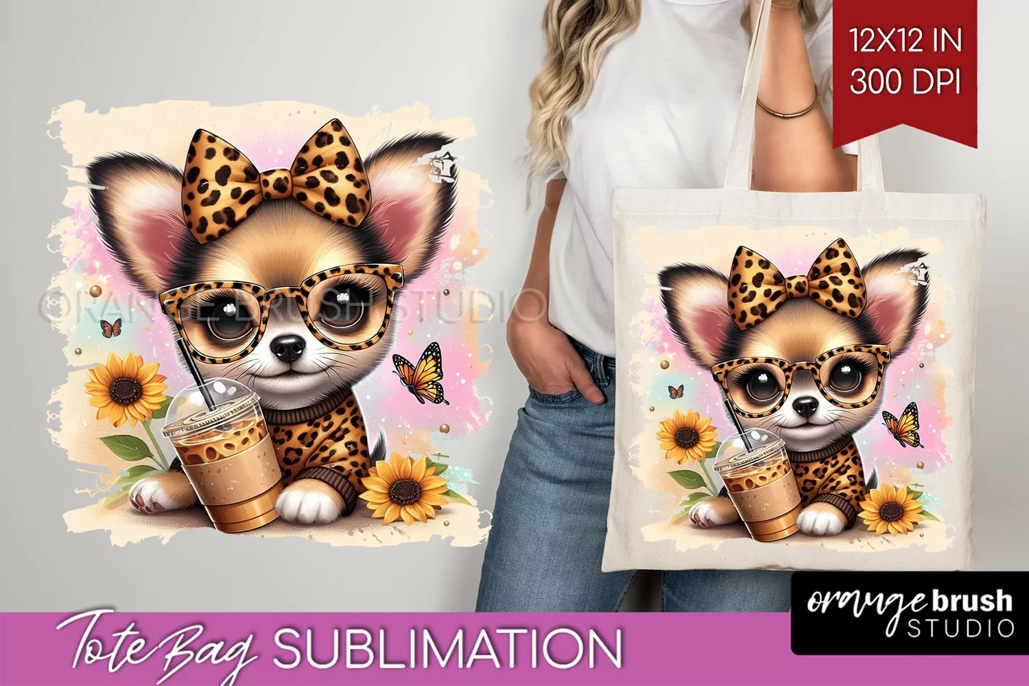 Similar Design Products to Cute Dog Tote Bag - Leopard Bow Tote Bag PNG Sublimation