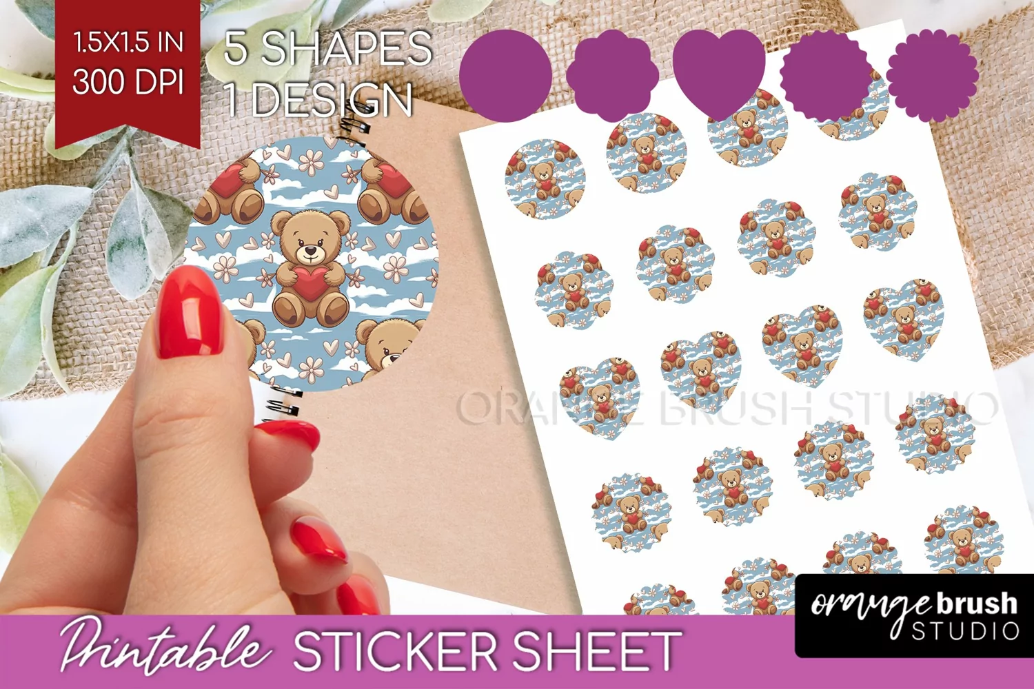 Teddy Bear Round Sticker - Valentine Printable Sticker Sheet