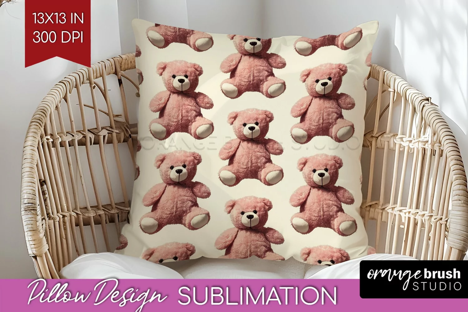 Teddy Bear Pillow Sublimation - Valentine Pillow Cover PNG