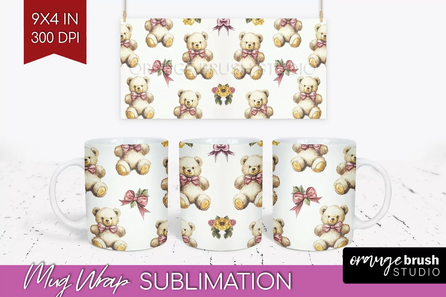 Teddy Bear Mug Wrap - Valentine Mug PNG Sublimation