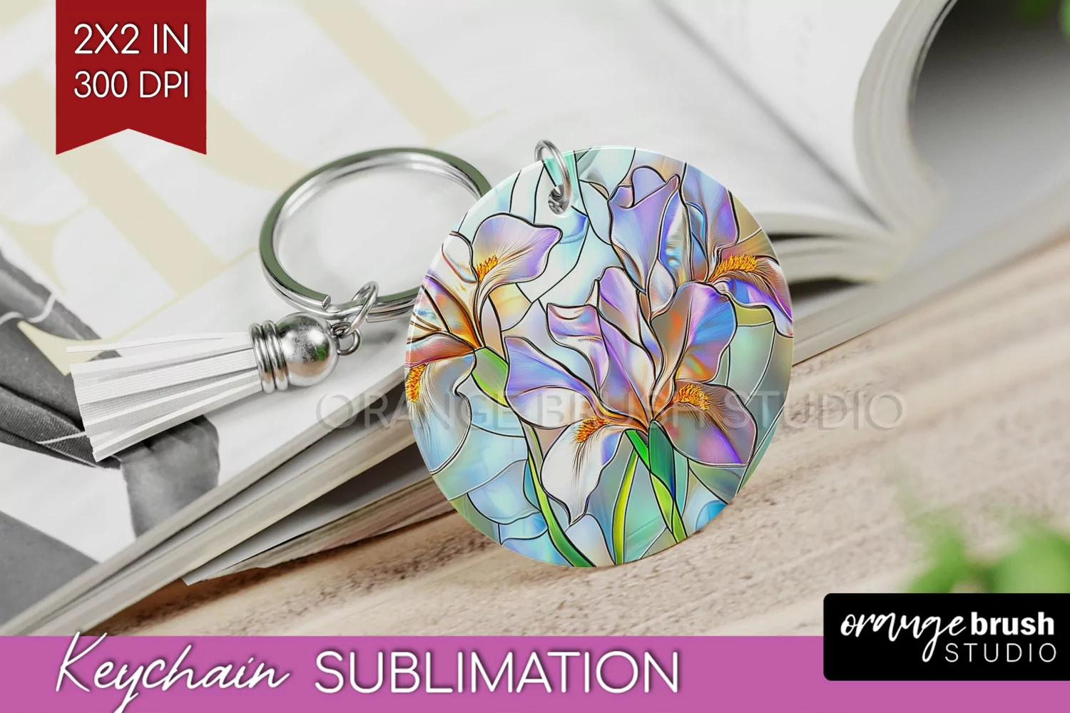 Stained Glass Flowers Keychain PNG - Floral Keychain example image 1