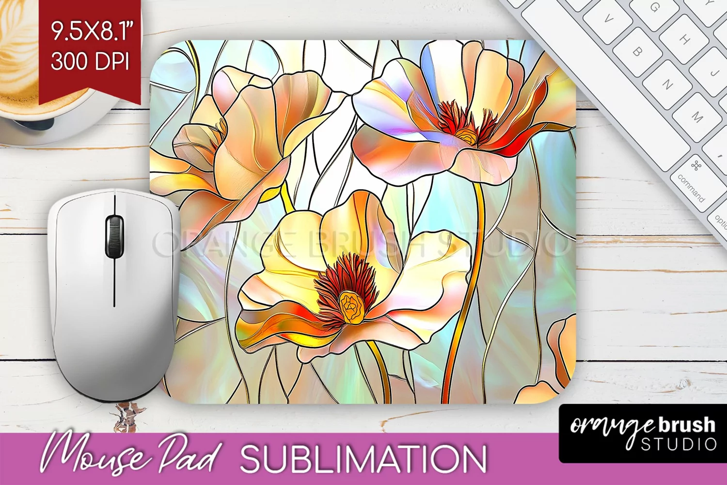 Stained Glass Flowers Mouse Pad Sublimation - Floral PNG example image 1
