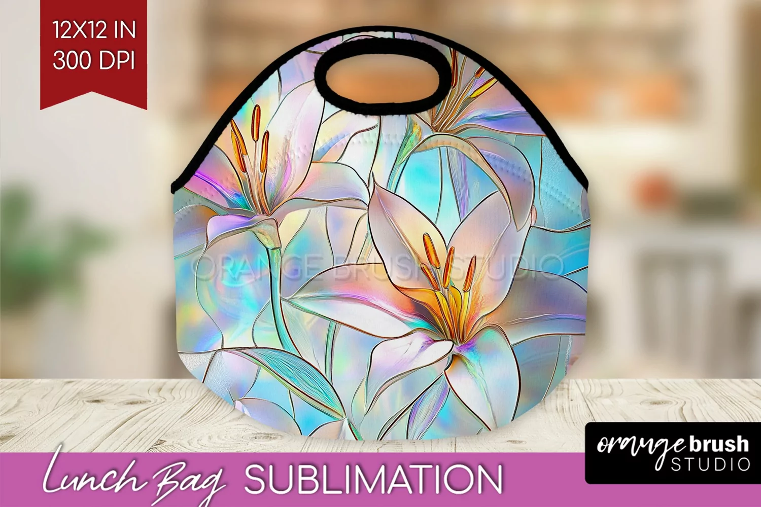 Stained Glass Flowers Lunch Bag - Floral Lunch Bug PNG example image 1