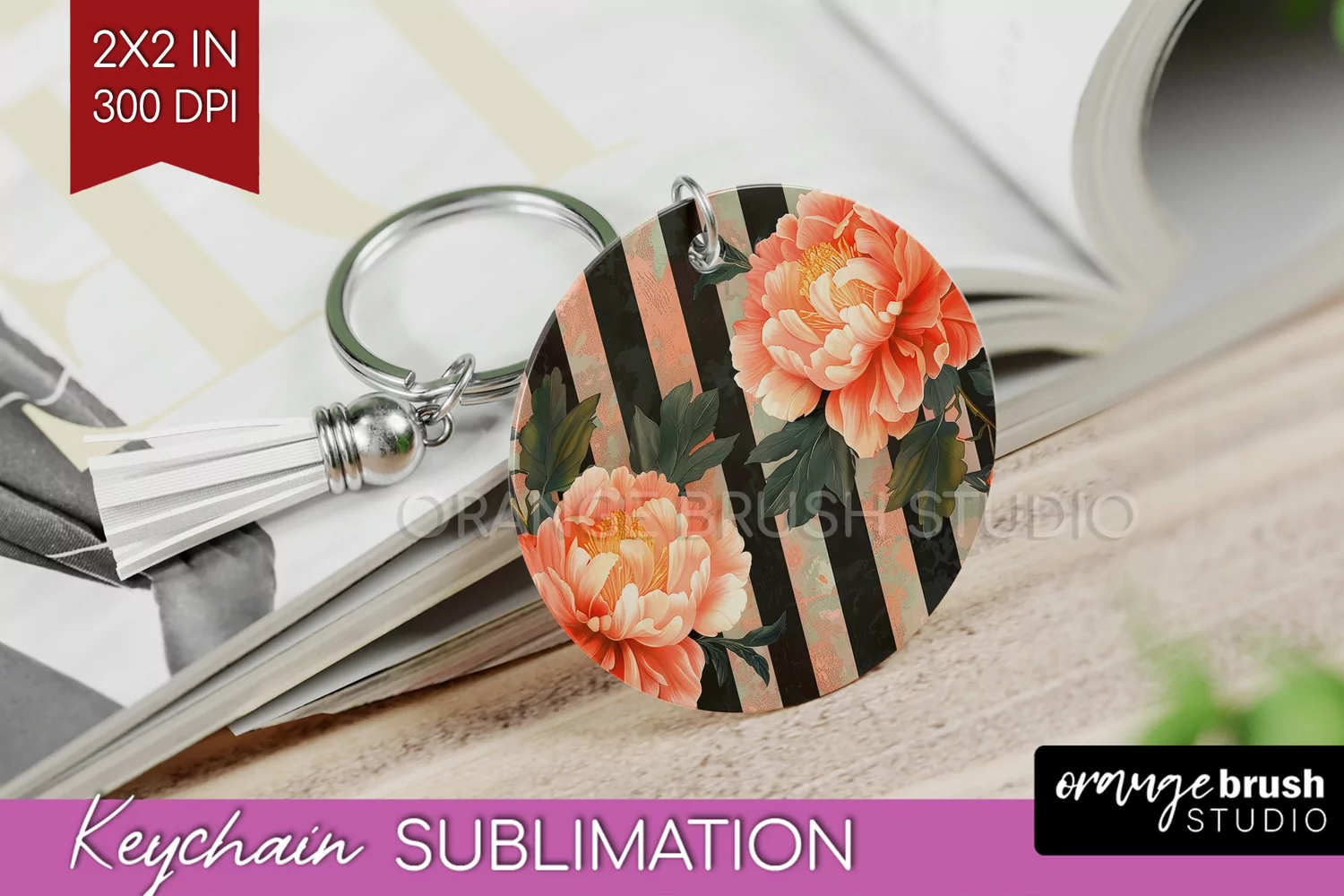 Similar Design Products to Peony Flowers Keychain PNG - Floral Keychain Sublimation