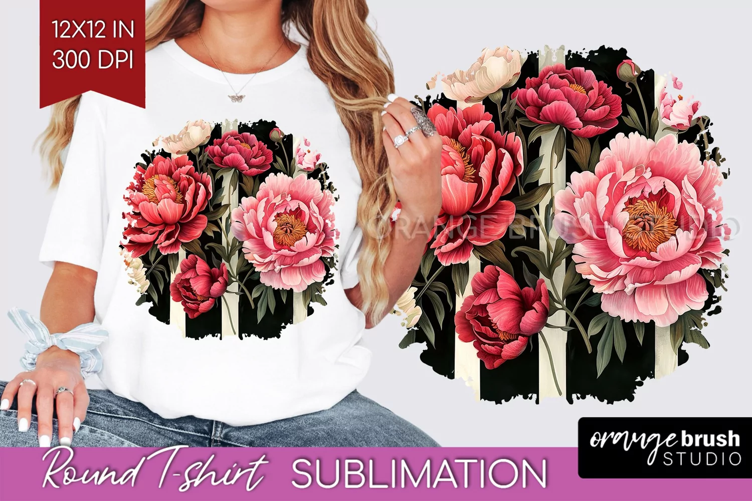 Peony Flowers Round Tshirt Background - Floral PNG example image 1