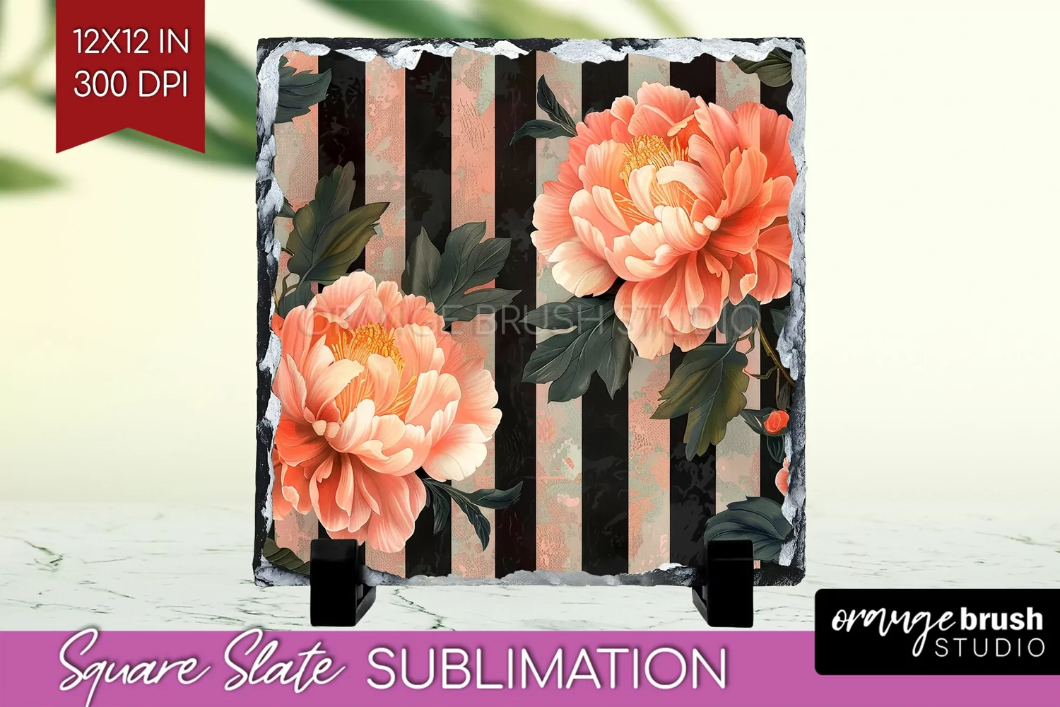 Peony Flowers Slate PNG - Floral Square Slate Sublimation