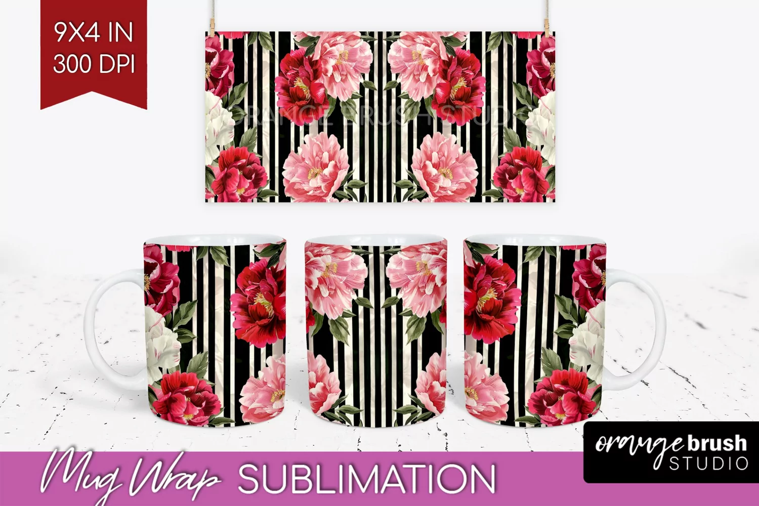 Peony Flowers Mug Wrap - Floral Mug PNG Sublimation