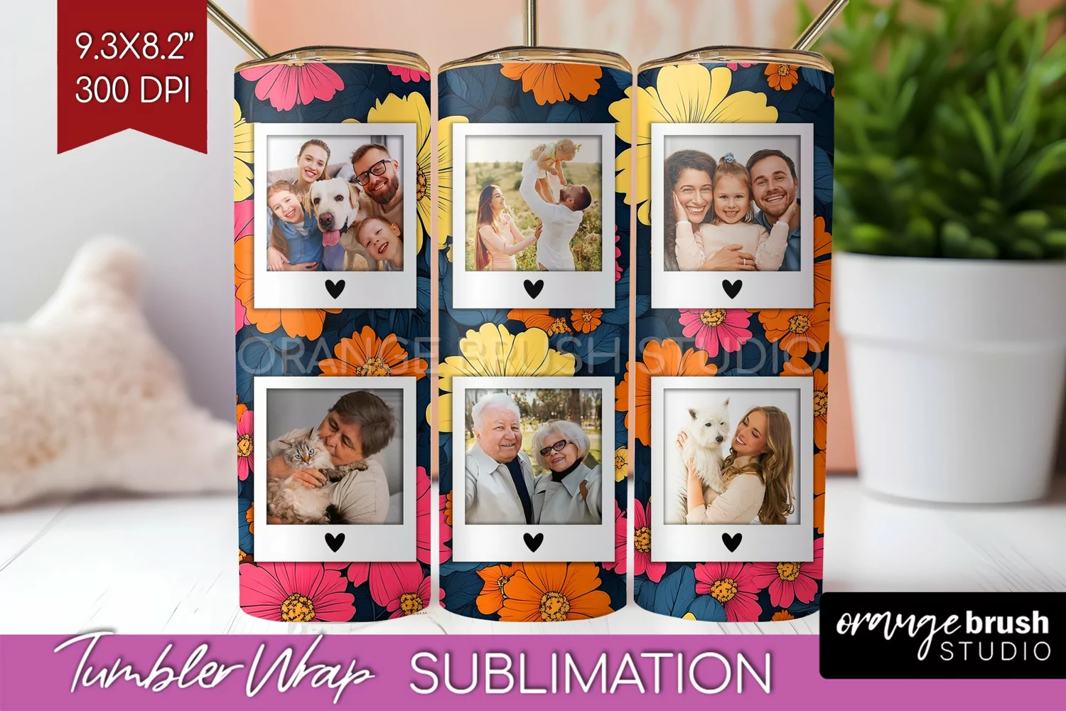 Personalized Tumbler Floral Tumbler Wrap Picture Tumbler Wrap Family Photo Tumbler Wrap Retro Photo Frame Frame Tumbler Wrap Add Your Photo Tumbler Tumbler Sublumation Flowers Picture Frame Tumbler Retro Photo Tumbler