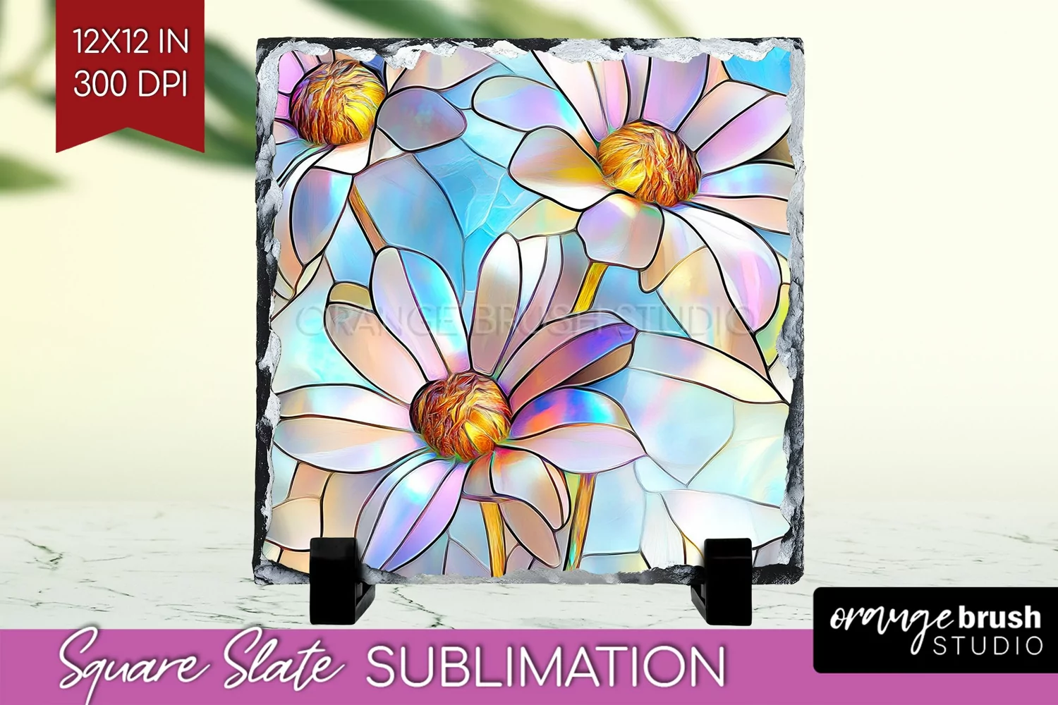 Stained Glass Flowers Slate PNG - Floral Square Slate example image 1
