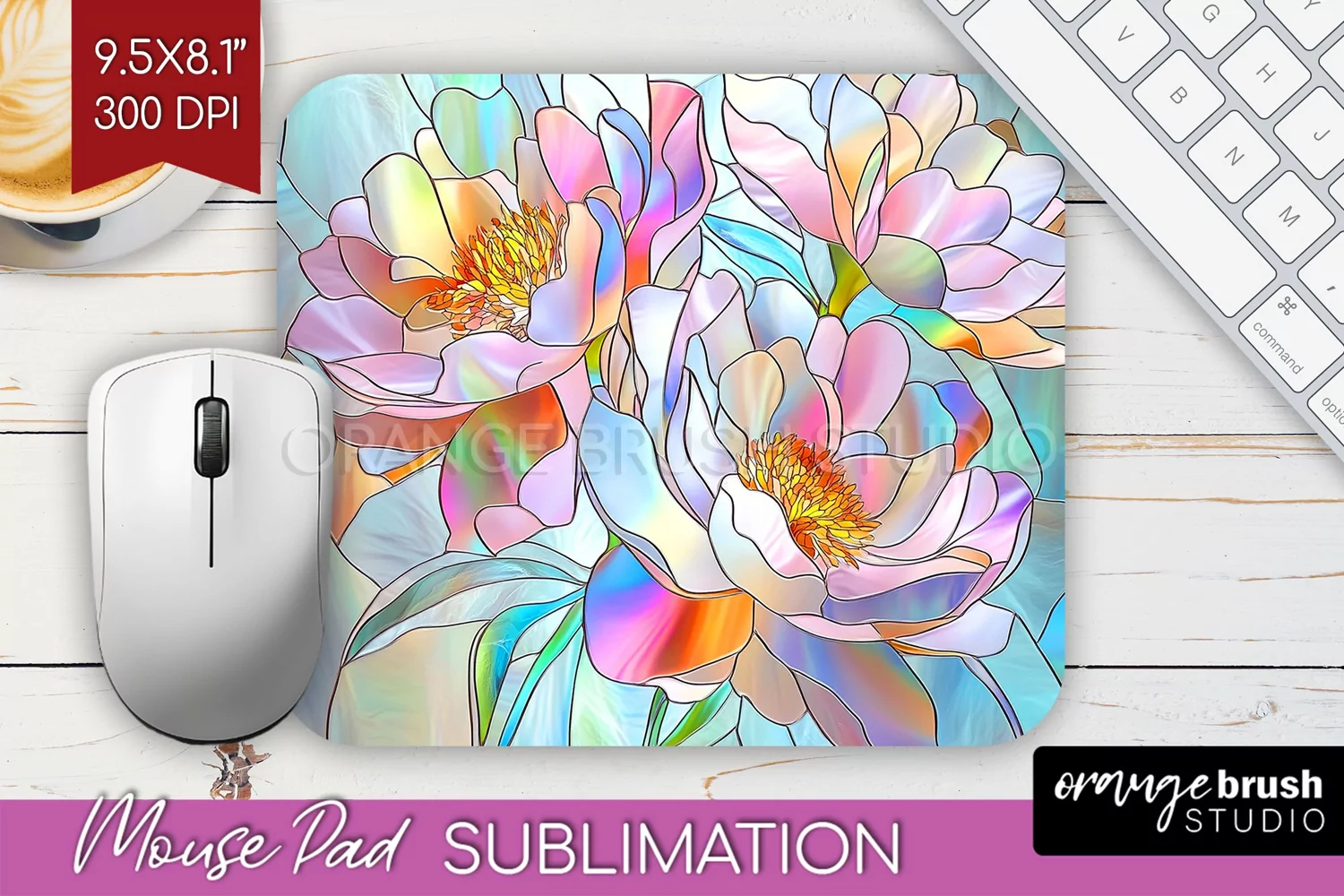 Stained Glass Flowers Mouse Pad Sublimation - Floral PNG example image 1