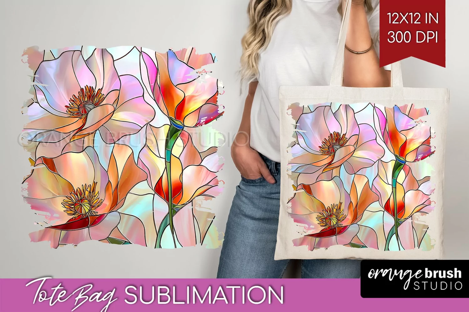 Stained Glass Flowers Tote Bag - Floral Tote Bag PNG example image 1