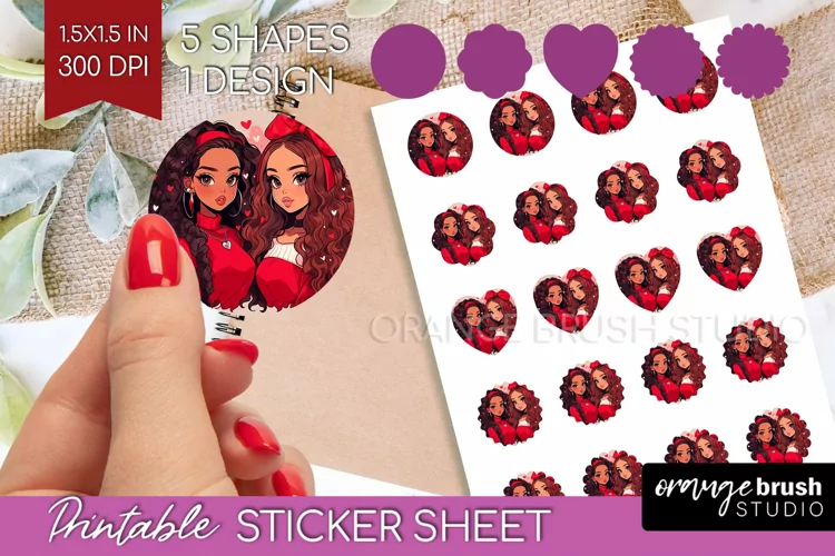 Similar Design Products to Valentine Girl Round Sticker - BFF Printable Sticker Sheet
