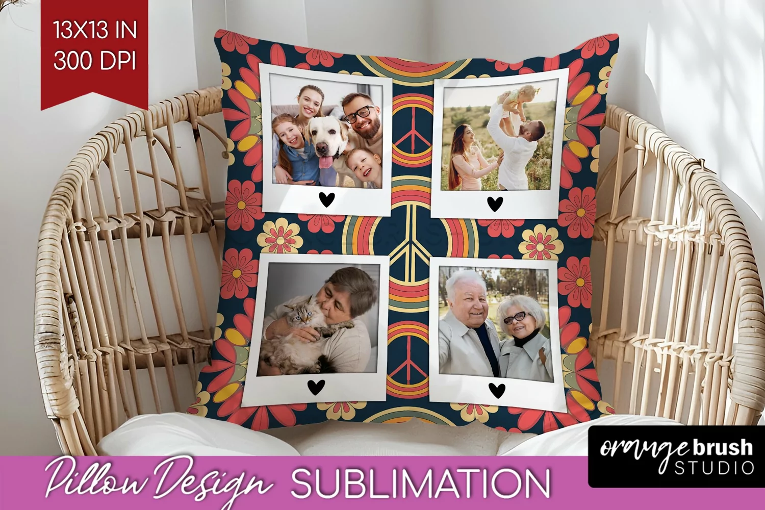 Personalized Pillow Retro Photo Frame Family Photo Pillow Add Your Photo Pillow Picture Pillow Pillow Sublumation Frame Pillow Cover Groovy Pillow Png Flowers Picture Frame Pillow Retro Photo Pillow