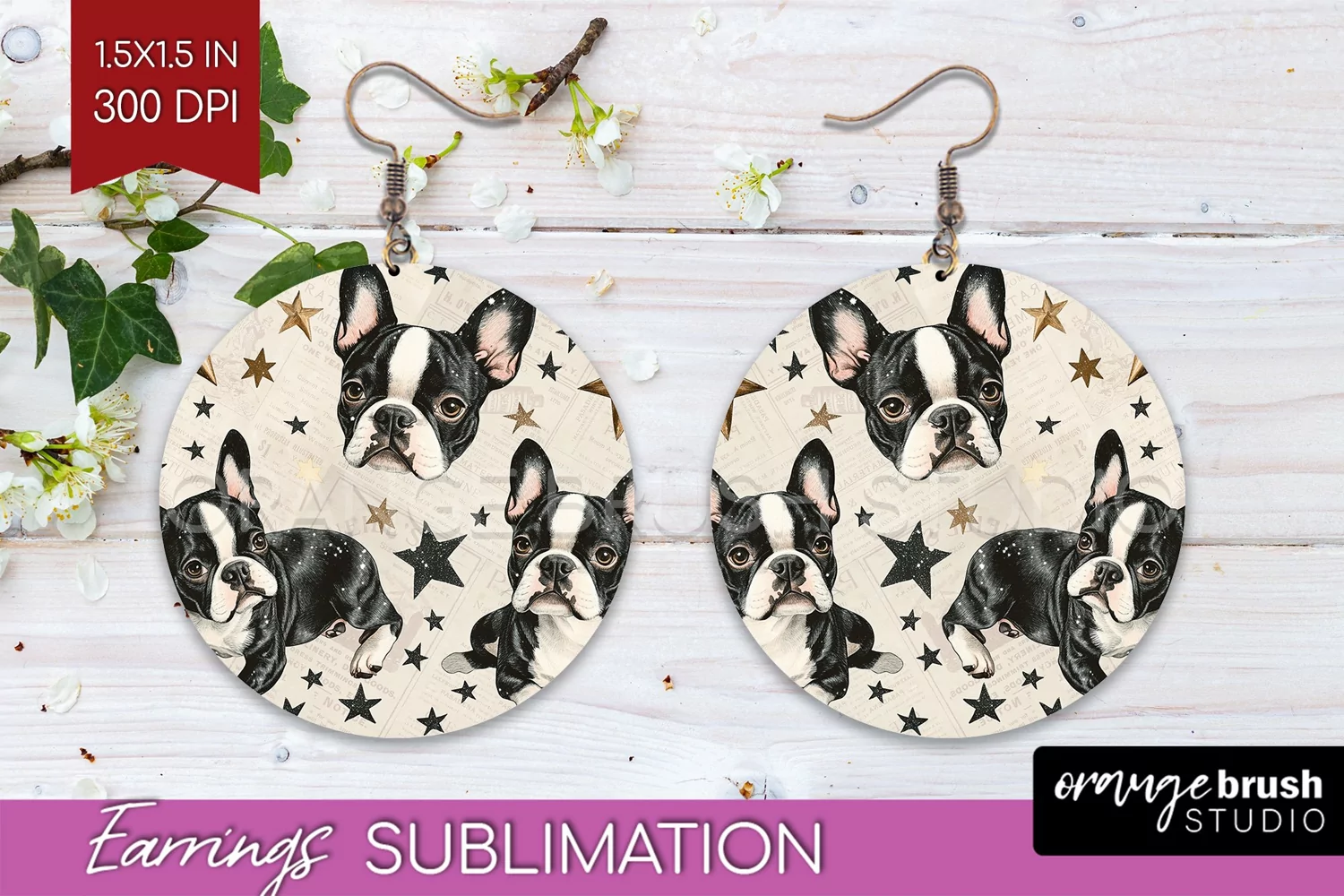 Cute Dogs Round Earrings - Puppy PNG Sublimation example image 1