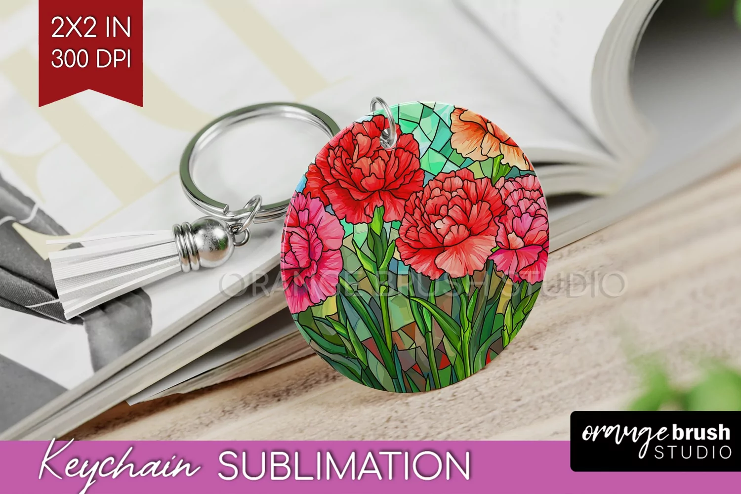 Stained Glass Flowers Keychain PNG - Floral Keychain example image 1