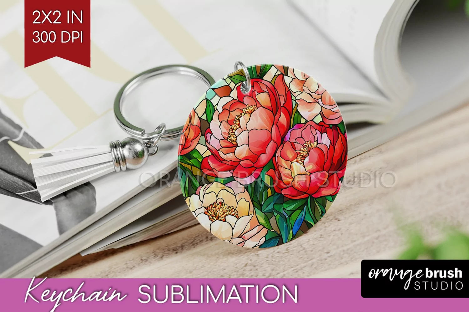 Stained Glass Flowers Keychain PNG - Floral Keychain example image 1