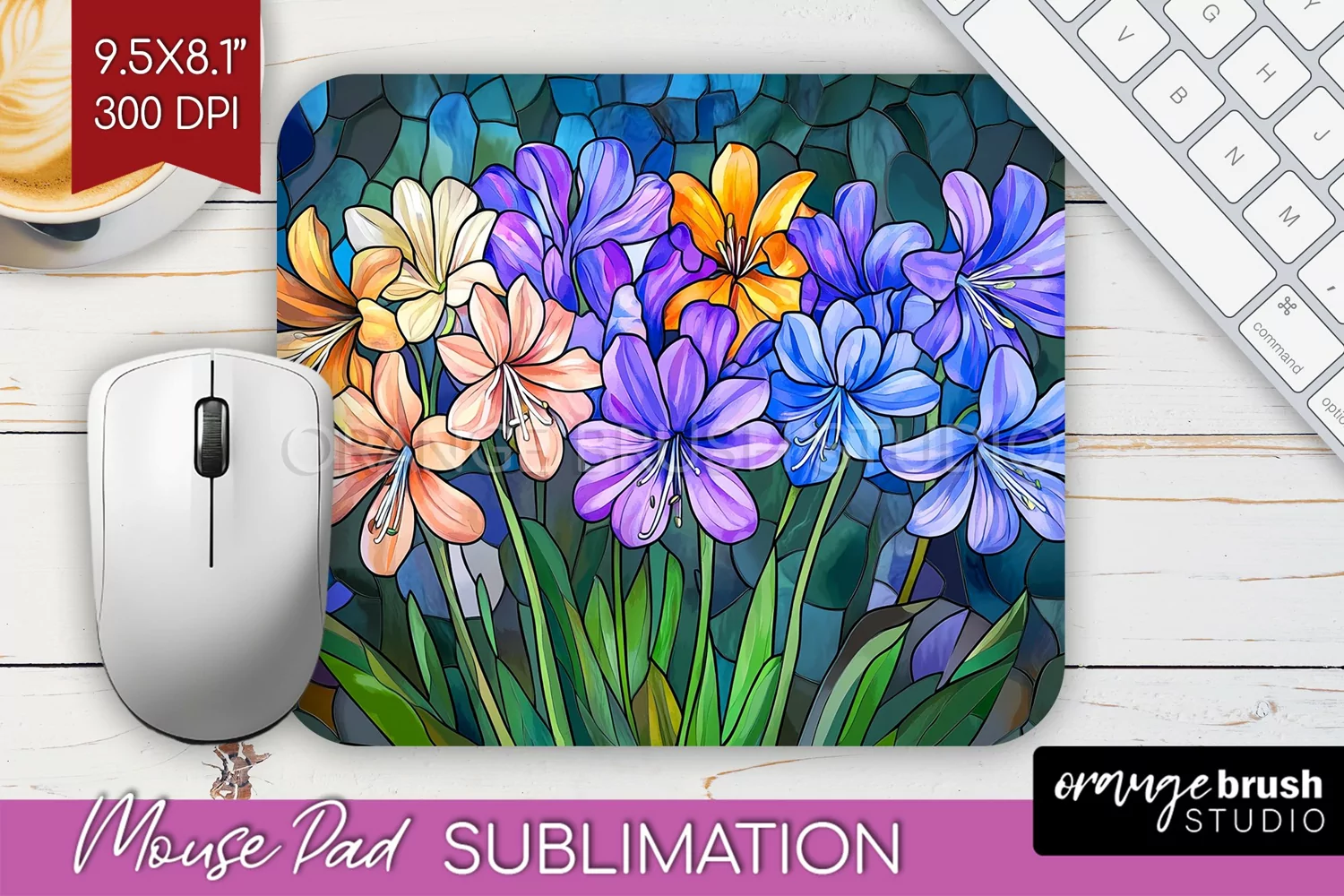 Stained Glass Flowers Mouse Pad Sublimation - Floral PNG example image 1