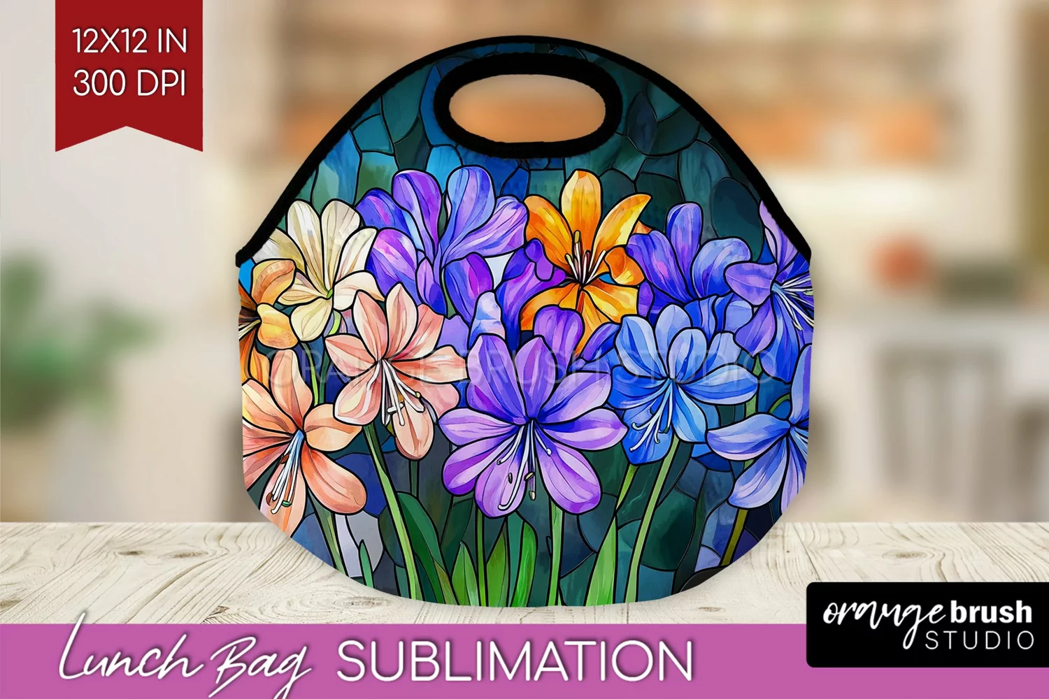 Stained Glass Flowers Lunch Bag - Floral Lunch Bug PNG example image 1
