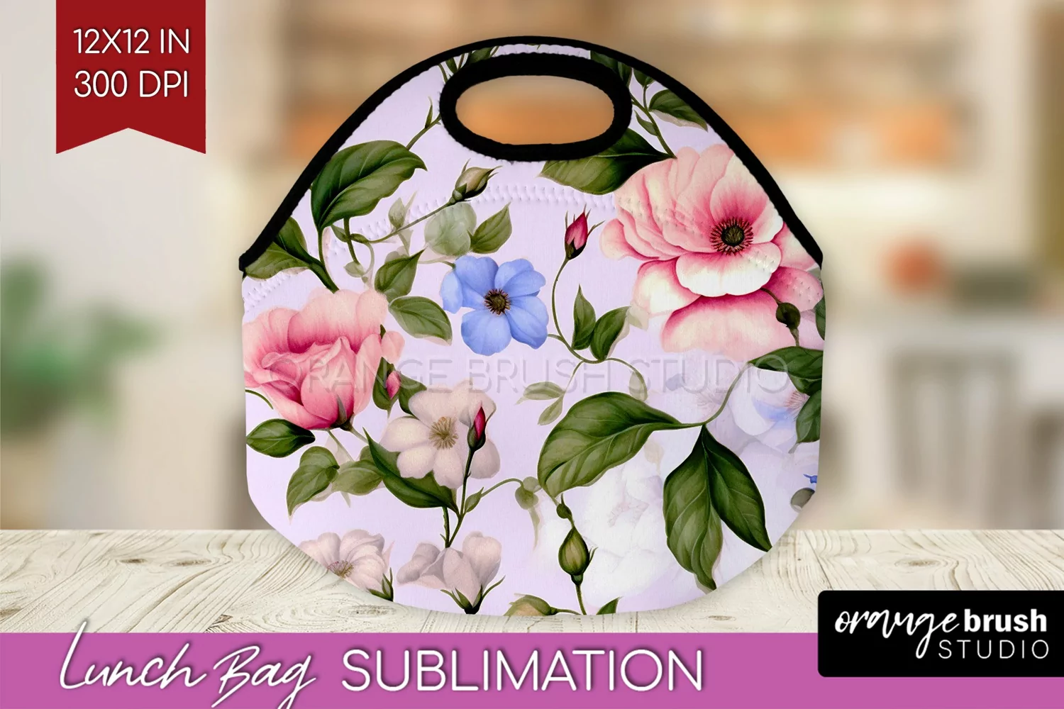 Spring Flowers Lunch Bag - Floral Lunch Bug PNG Sublimation example image 1