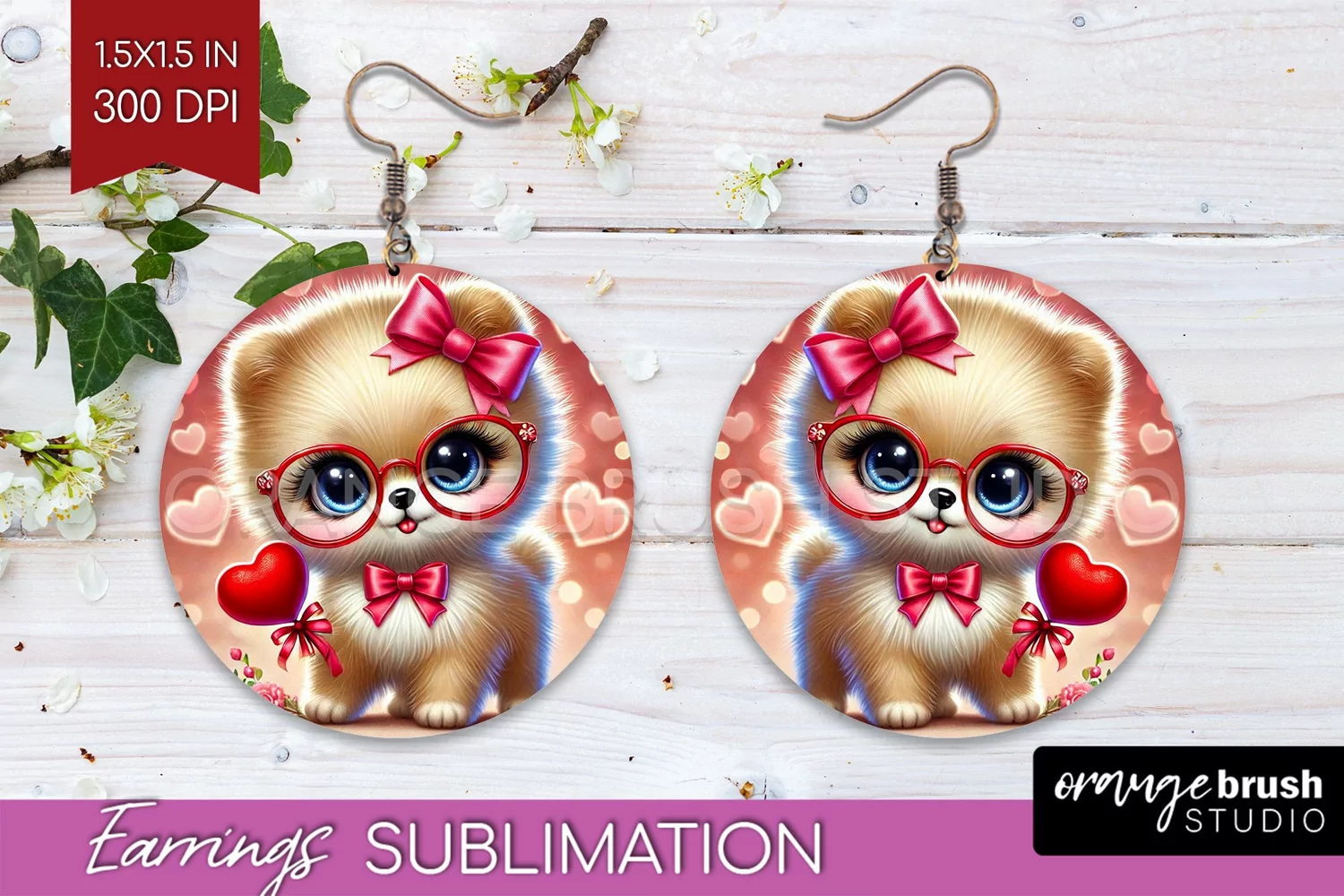 Valentine Dog Round Earrings - Cute Puppy PNG Sublimation