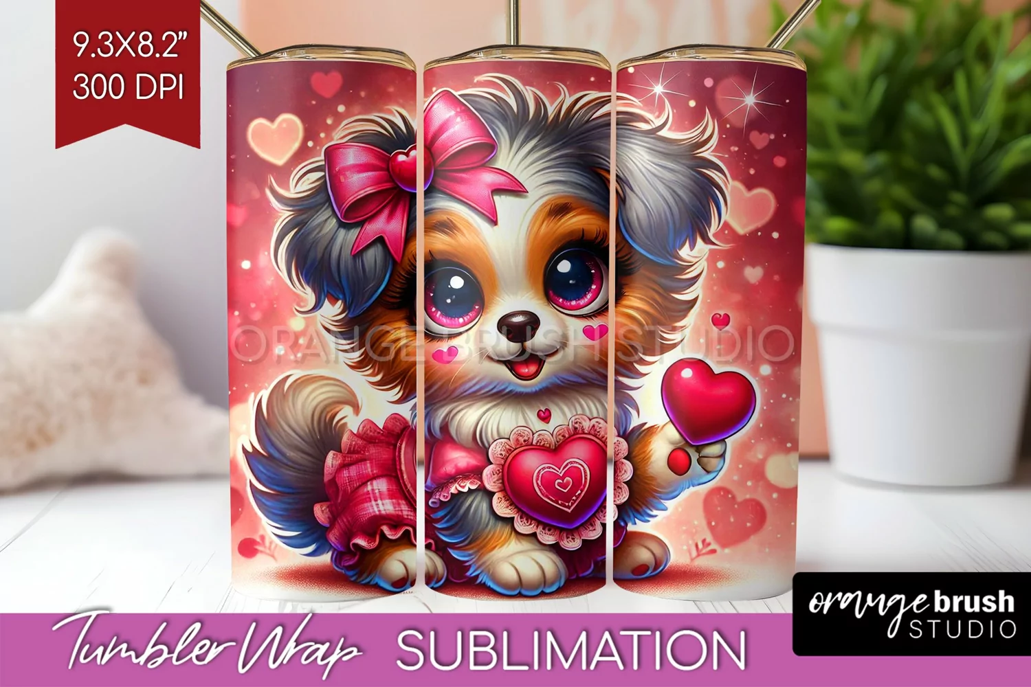 Valentine Dog Tumbler Wrap - Cute Puppy Tumbler PNG example image 1