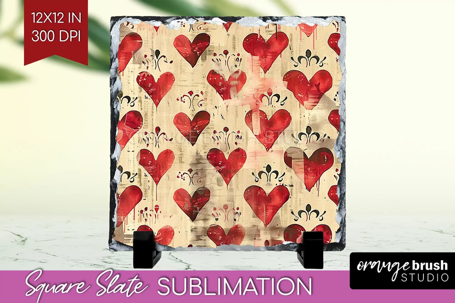 Hearts Slate PNG - Valentines Day Square Slate Sublimation