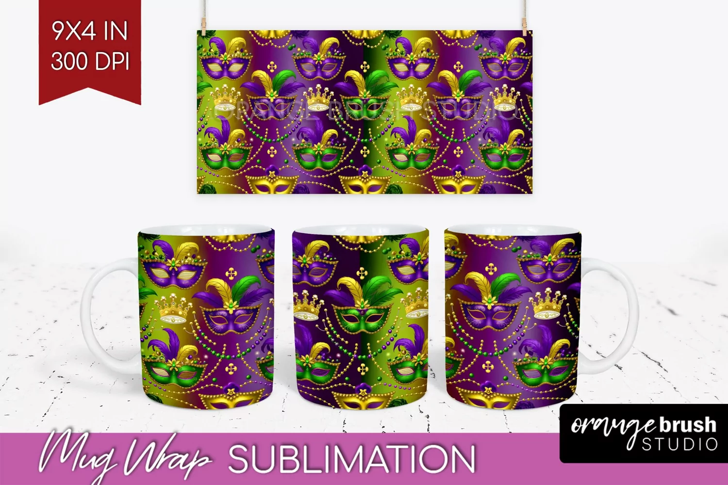 Mardi Gras Mug Wrap - Carnival Mug PNG Sublimation example image 1