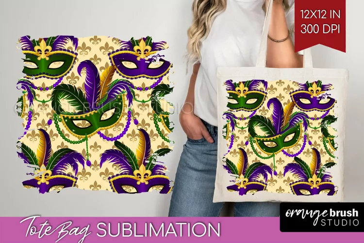 Mardi Gras Tote Bag - Carnival Tote Bag PNG Sublimation example image 1