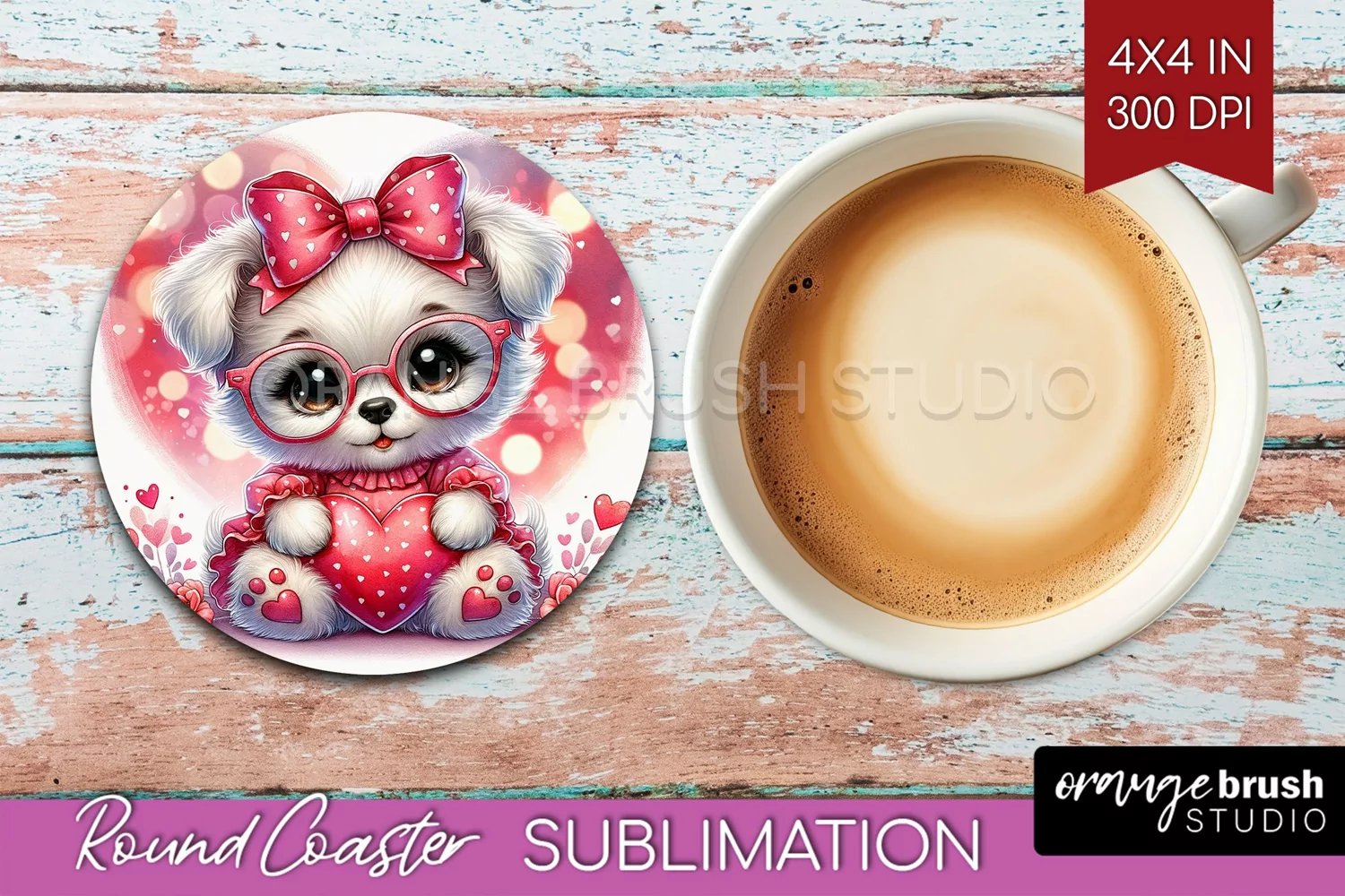 Valentine Dog Round Coaster - Cute Puppy Coaster PNG example image 1