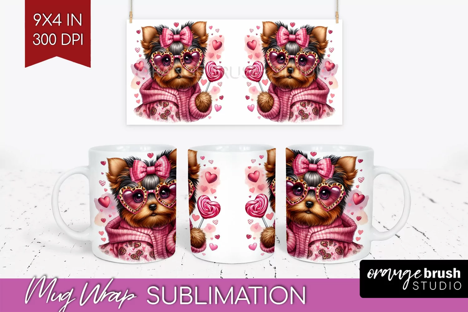 Valentine Dog Mug Wrap - Cute Puppy Mug PNG Sublimation example image 1