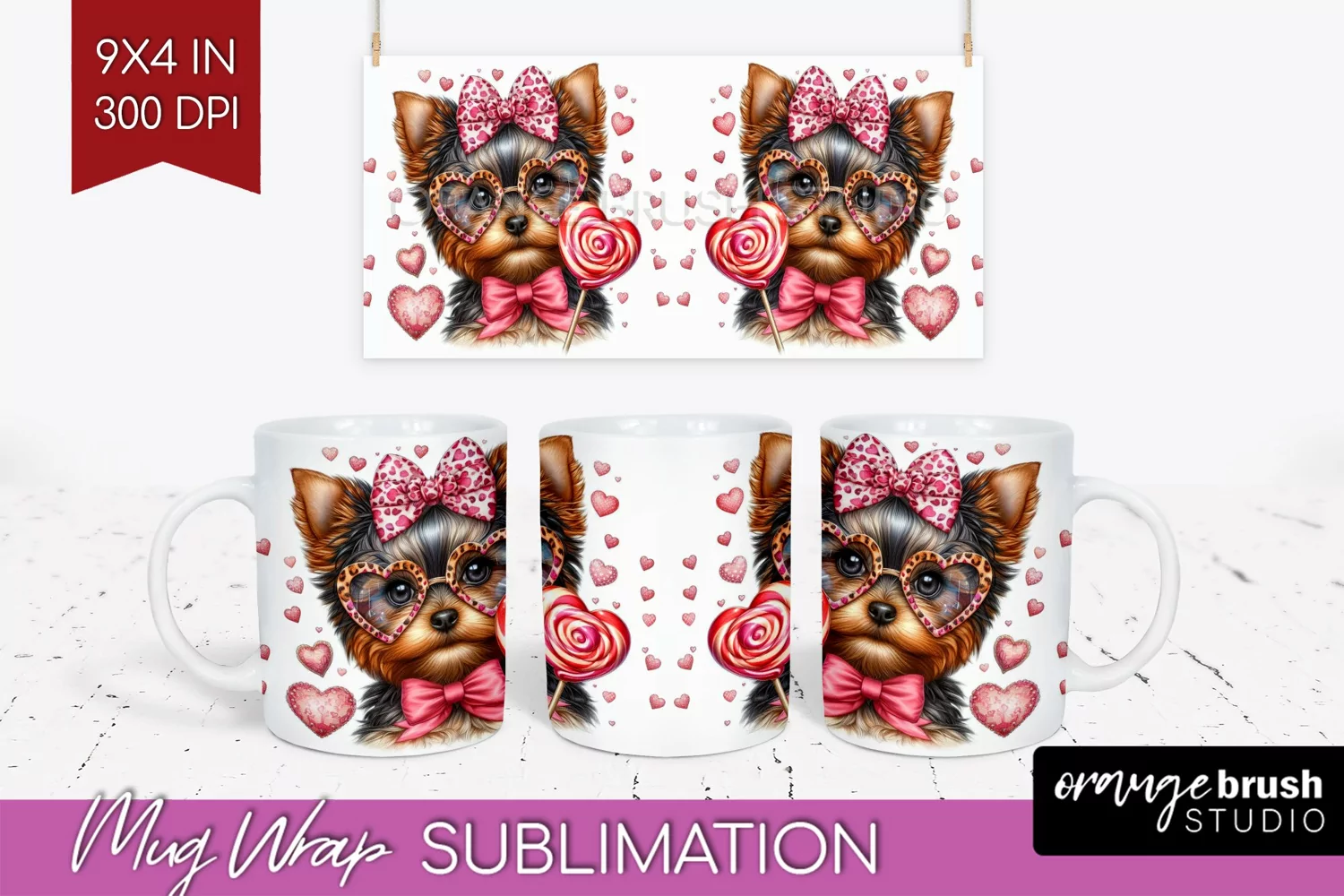 Valentine Dog Mug Wrap - Cute Puppy Mug PNG Sublimation example image 1