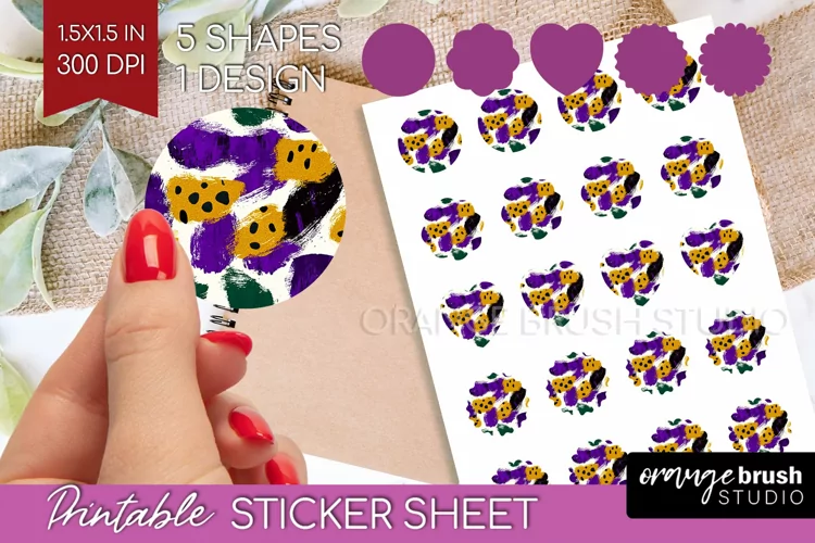 Mardi Gras Round Sticker - Carnival Printable Sticker Sheet