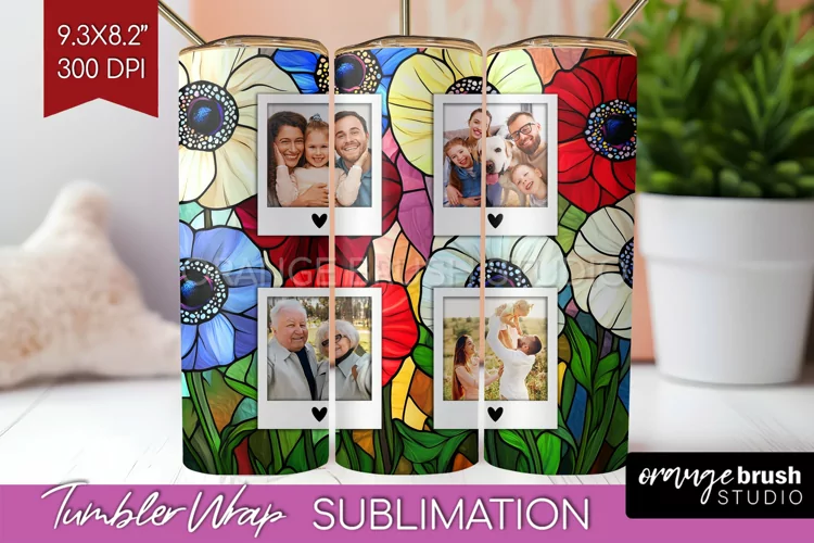 Personalized Tumbler Floral Tumbler Wrap Picture Tumbler Wrap Family Photo Tumbler Wrap Frame Tumbler Wrap Add Your Photo Tumbler Tumbler Sublumation Flowers Picture Frame Tumbler Stained Glass Photo Frame Stained Glass Photo Tumbler