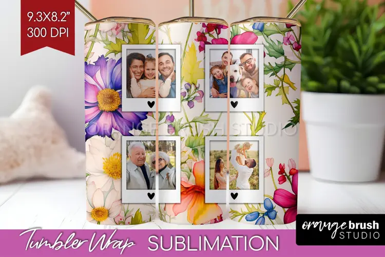 Personalized Tumbler Floral Tumbler Wrap Picture Tumbler Wrap Family Photo Tumbler Wrap Frame Tumbler Wrap Add Your Photo Tumbler Tumbler Sublumation Flowers Picture Frame Tumbler Spring Photo Frame Spring Photo Tumbler