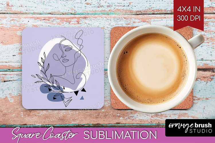 Line Art Woman Square Coaster - Minimalist Coaster PNG example image 1